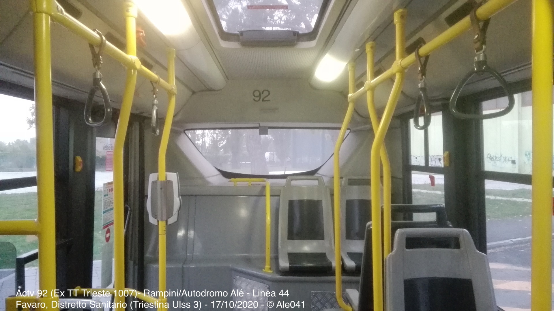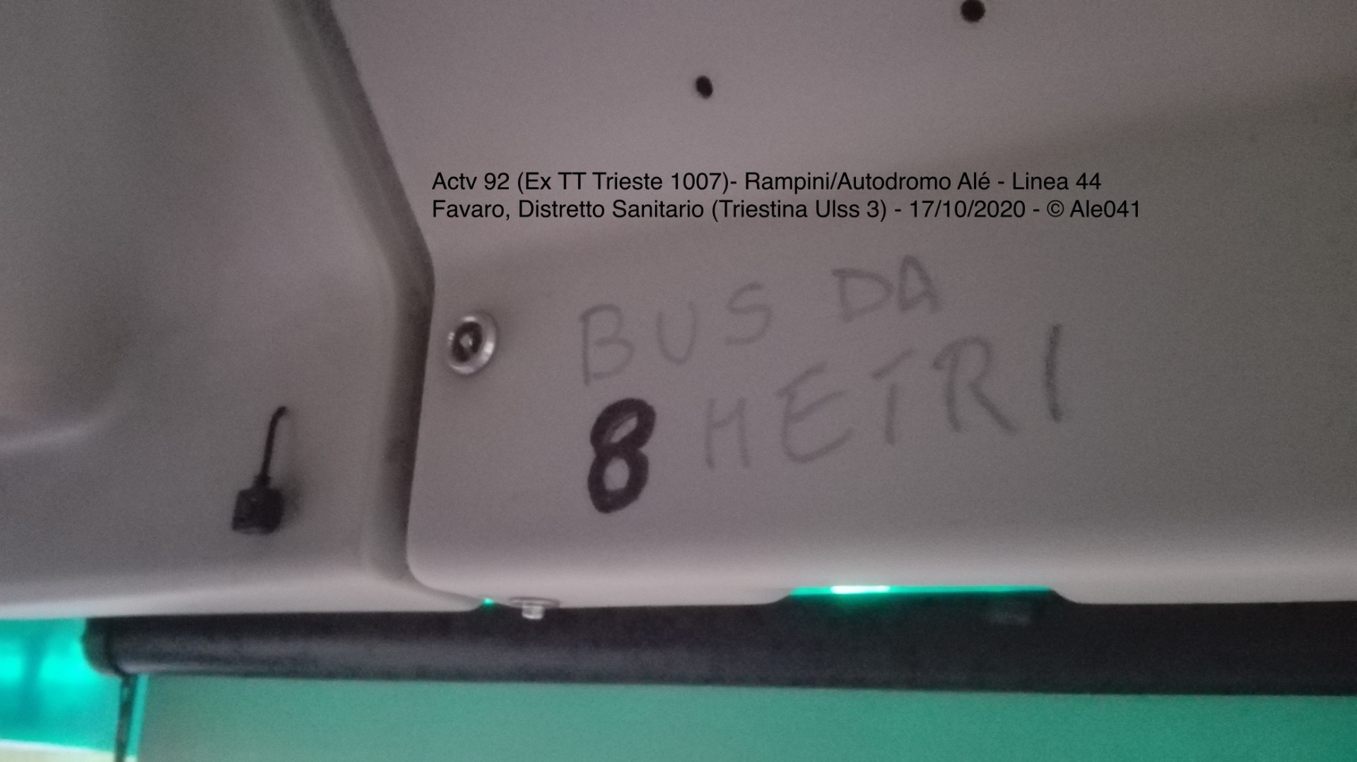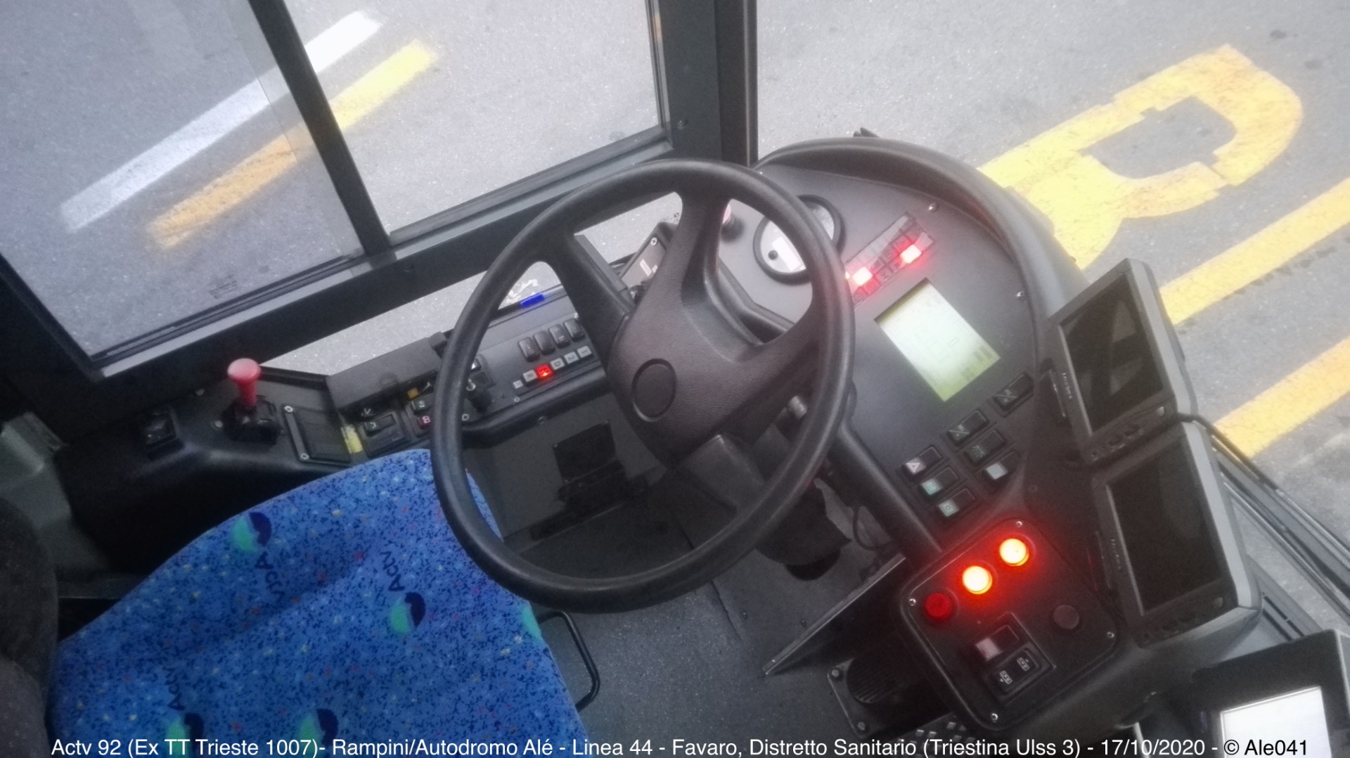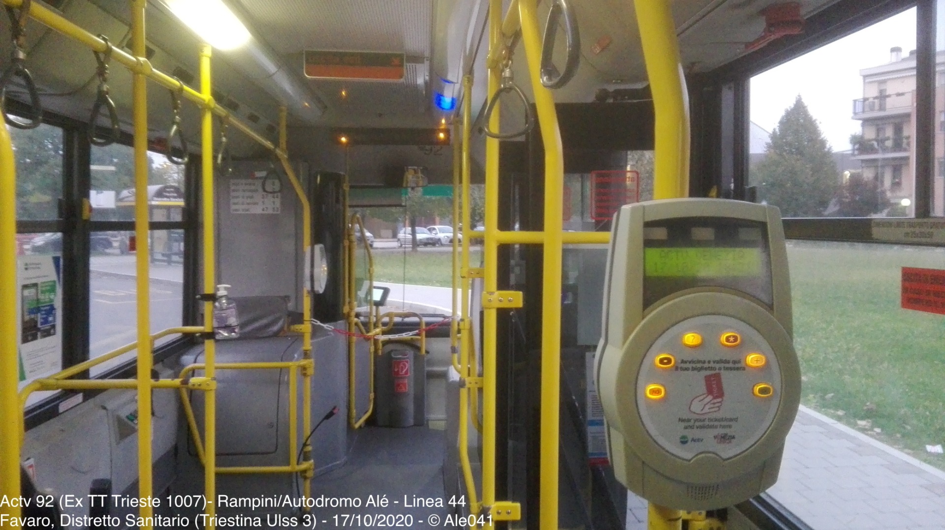 Foto scattate a Favaro, Distretto Sanitario (Fermata "Triestina Ulss 3"), sabato 17 ottobre 2020, alla matricola 92 (ex TT Trieste 1007), costruita nel 2008, e in Actv dal 2017. Corsa delle 18:25.